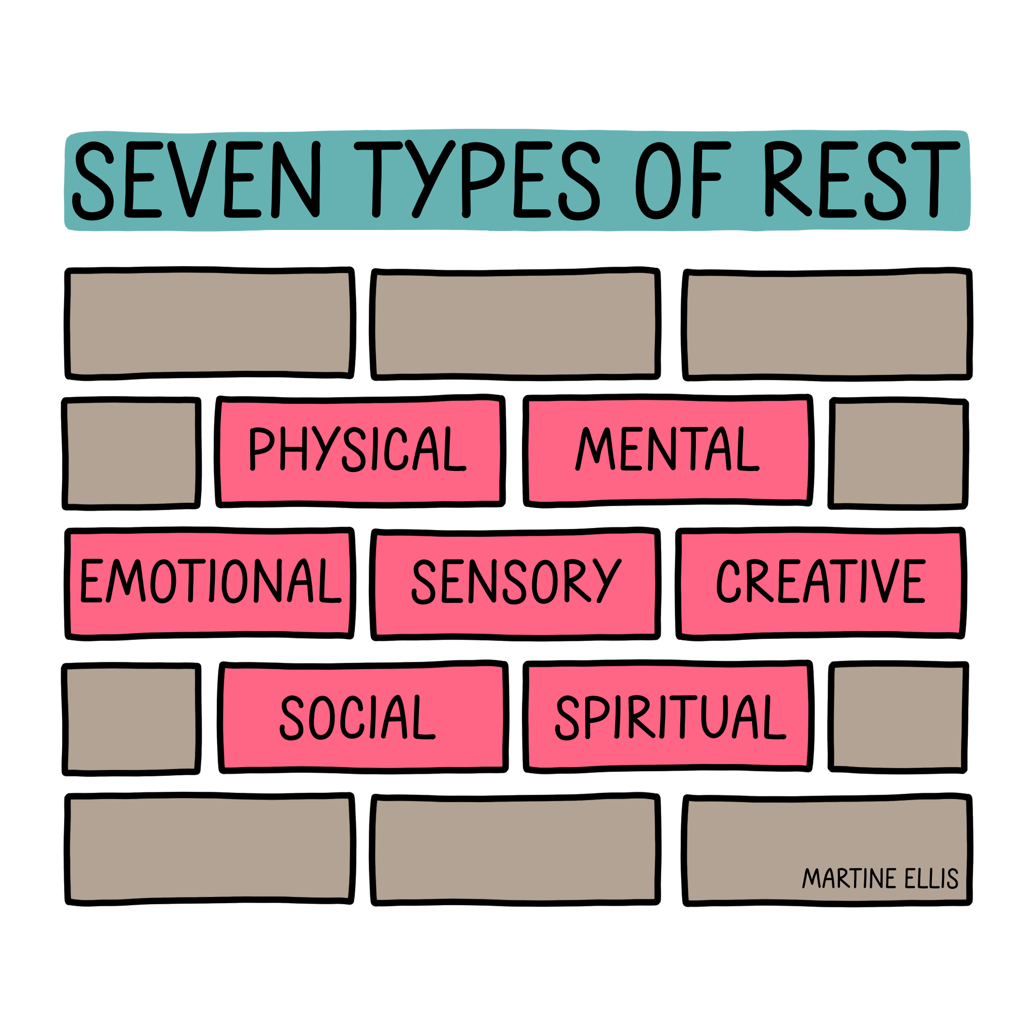 Physical rest includes sleep and other ways of relaxing your body, such as yoga or a gentle walk.