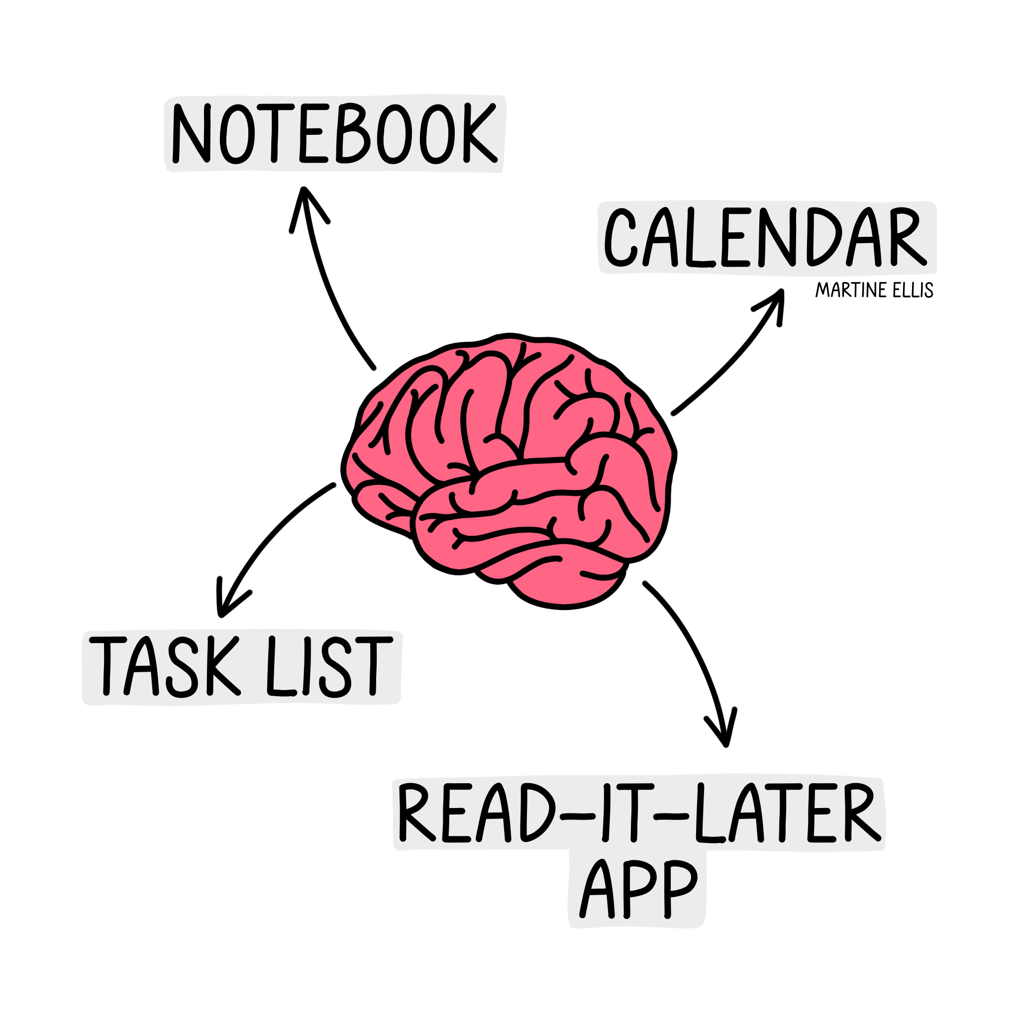 Your working (short-term) memory has a limited capacity—research suggests it can hold between 3 and 8 items. Unsurprisingly, when we try to cram in too much (tasks, reminders, ideas, information), we feel overwhelmed.